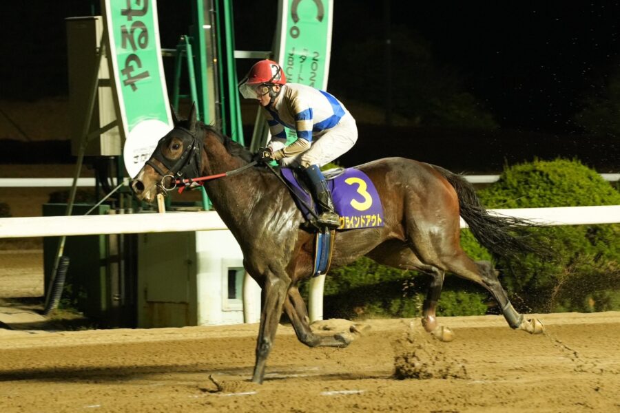 令和6年1月21日(日)、佐賀競馬場で行われた「山口シネマ杯 第65回花吹雪賞」(3歳牝馬・ダート1,800m)で、高知競馬所属のグラインドアウト号(田中 守厩舎、赤岡修次騎手騎乗)が優勝しました。ピクシースカイ号(別府真司厩舎、中島龍也騎手騎乗)は2着で、高知勢がワンツーフィニッシュを飾りました。