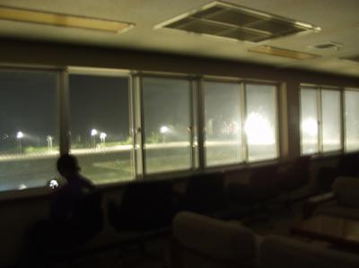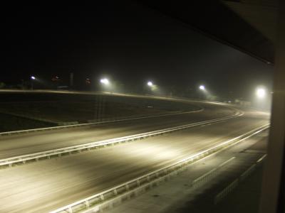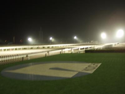 次は来賓室1から。ワタクシ、窓を拭こうと思いました。この明るさで、攻め馬を行うそうです。試験点灯中、雷がごろごろ鳴っておりました。ワタクシ、頑張ろうとか興奮すると雨を呼ぶと事務所で有名ですが、今回興奮しすぎ、小さな嵐を呼んでみました。えへ。