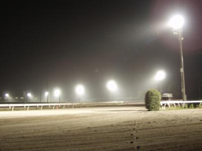照明の明るさは実際のレースの4.5分の1の明るさです。騎手たちは、明るいと安心できたようです。良かった。