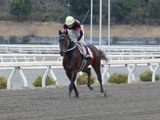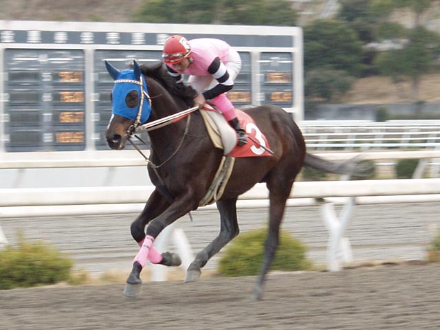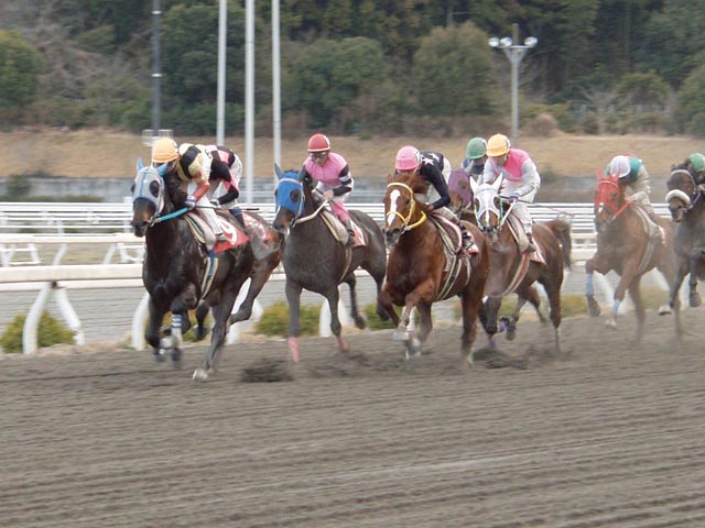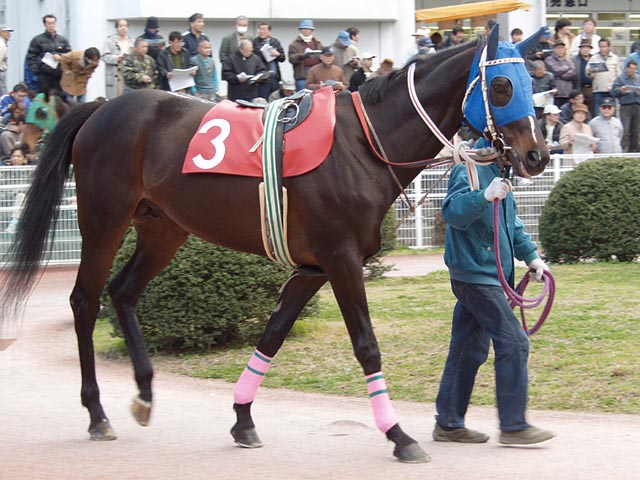 2003年2月23日(日)高知競馬場で実施された準重賞「だるま夕陽特別」競走は−サラ系4歳以上・1400m(ダート・右回り)−マッケンリーダー号(牡10・雑賀秀介厩舎)が快勝! 2着には現在D級格付けながら果敢に挑戦を見せた古豪ナムラコクオー号が入線。中央競馬で見せた豪脚の片鱗をファンに改めてアピールしています。