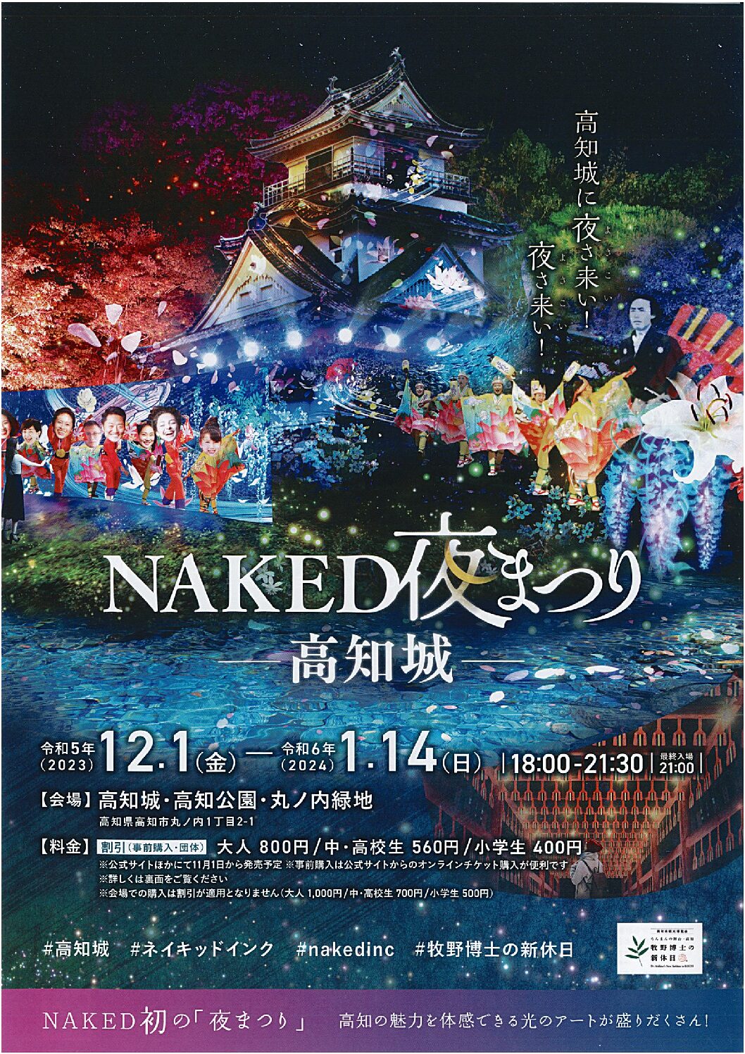 令和5年12月16日(土)、17日(日)に、高知競馬場内のキャッシュレス投票で高知けいば、JRAおよび地方競馬を1,000円以上購入された方に、高知城で開催されています“NAKED夜まつり-高知城-”のご招待券(入場チケット)を2枚プレゼ...