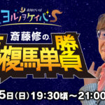 ゆる~く、楽しく、ドキドキできる馬券予想とレース中継。みんなで高知けいばを楽しみましょう! ヨルノヲケイバS~斎藤修の馬複馬単勝負~【6/25(日)19:30頃~21:00頃】 ヨルノヲケイバでお馴染みの競馬アナリスト...