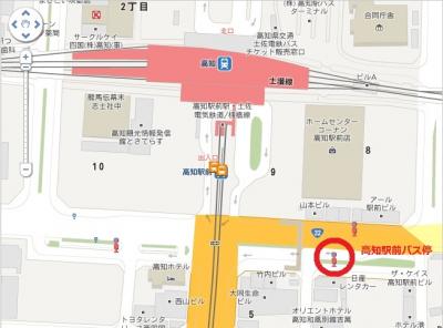 | 「高知駅前バス停」(日産レンタカー前)※ | 14:00 |